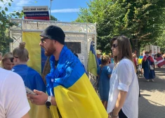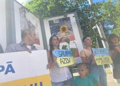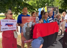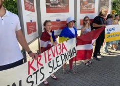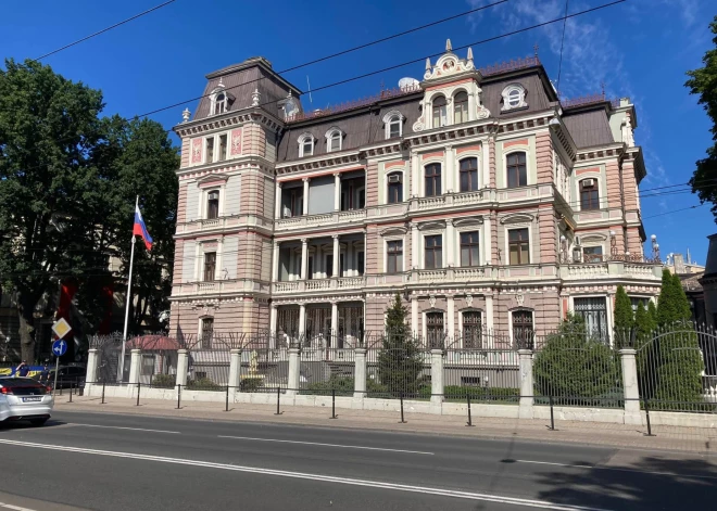 Pretī Krievijas vēstniecībai pulcējušies ap 30 cilvēku, lai pieprasītu Krievijai izbeigt prettiesiskas represijas pret Ukrainas Nacionālās gvardes atsevišķo īpašo uzdevumu vienības "Azov" gūstekņiem.