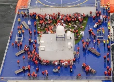 Ierodoties nozīmētajā vietā, pasažieri nosūtīti uz klāja, kur dalītas glābšanas vestes. Ārā tikmēr bijis stiprs vējš un lieli viļņi.