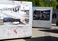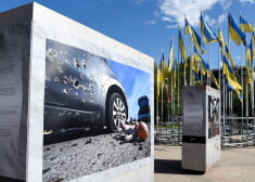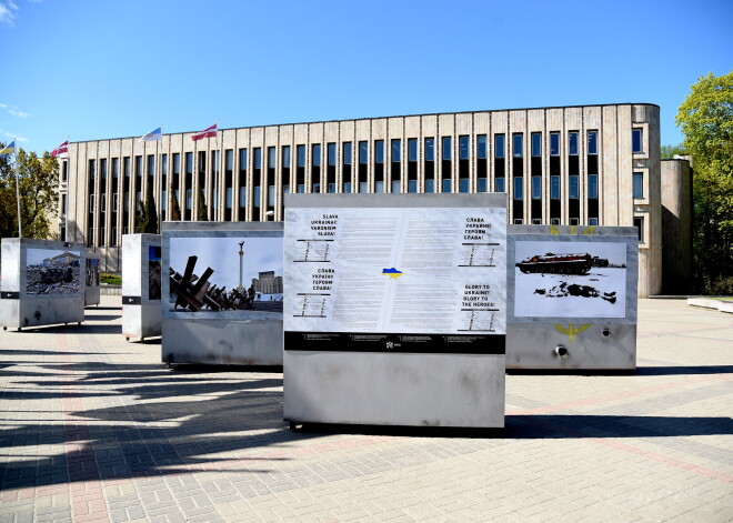 Izstāde "Slava Ukrainai! Varoņiem slava!" pārvietota pretī Krievijas vēstniecībai