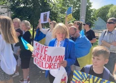Svētdien, 31. jūlijā, ļaudis sapulcējās iepretim Krievijas vēstniecībai Rīgā, lai protestētu pret Krievijas spēku zvērībām pret Ukrainas karagūstekņiem.