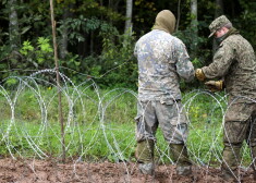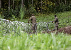 Lai kavētu nelegālo migratnu plūsmu, uz Latvijas-Baltkrievijas robežas tiek uzstādīts Slovēnijas Aizsardzības ministrijas dāvinātais pagaidu žogs.
