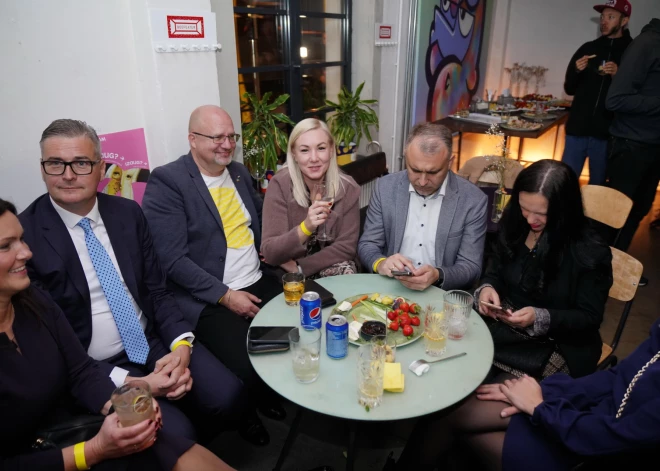 "Attīstībai/Par!" 14. Saeimas vēlēšanu rezultātus gaida brīvā gaisotnē pie bāra letes