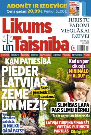 Vairāk lasiet jaunajā žurnālā “Likums un Taisnība” – arī, kam pieder Latvijas zeme un meži; Babītē jau 20 gadu cīnās pret nelegālu stāvvietu; vai pabalsts pienākas, ja malku gādā pats; kādas ir kompensācijas par aizsargjoslām; ko no Latvijas meklē Eiropols.