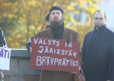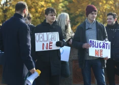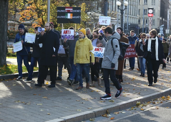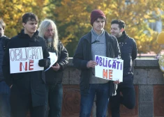 Aptuveni 50 cilvēki gājienā protestē pret Valsts aizsardzības dienesta ieviešanu