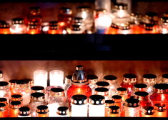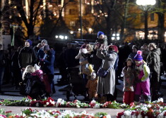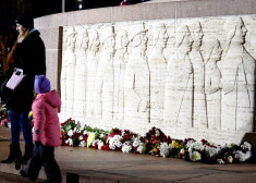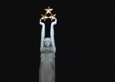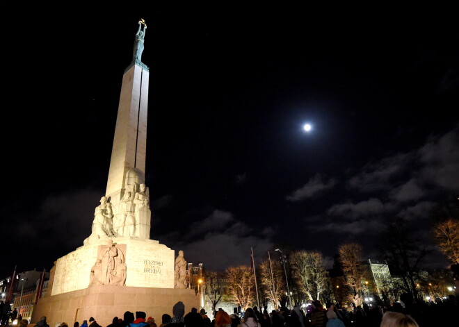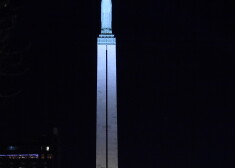 Cilvēki apbrīno par ziedojumiem izgaismoto Brīvības pieminekli