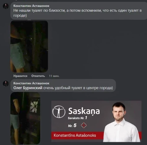 Portāla “Facebook” konts Pilsēta.lv ir publicējis ekrānuzņēmumus no Astašonoka sarakstes ar kādu iedzīvotāju.