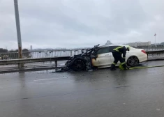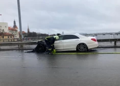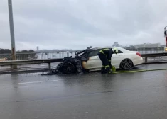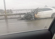 Glābējiem izdevies liesmas nodzēst, bet redzams, ka "Mercedes" priekšpuse ir sadegusi. Uz tilta veidojās sastrēgums, turklāt lielāks nekā tas ierasts ikdienā.