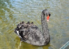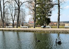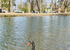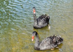 Cēsu melnie gulbji atgriezušies Maija parka dīķī