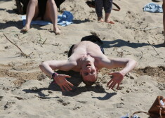 Festivāla ļaudis no svelmes glābjas smakojošajā pludmalē