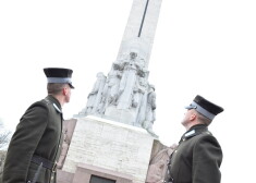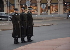 Goda sargu maiņa agrā ceturtdienas rītā pie Brīvības pieminekļa Rīgā.