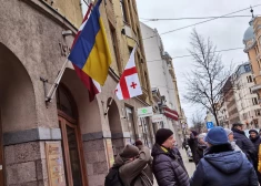 Kā novēroja Jauns.lv, šāds atbalsta mītiņš pulksten 12.00 noritēja arī pie Gruzijas vēstniecības Rīgā.