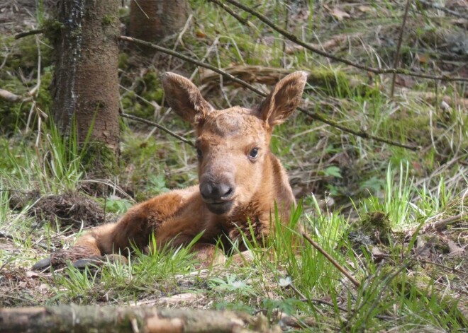 Līgatnes dabas taku aļņu māte Mirga laidusi pasaulē mazuli