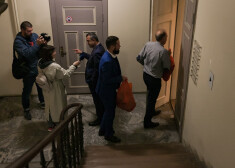 Partiju apvienības "Jaunā Vienotība" biedri un draugi balsu skaitīšanai līdzi sekoja no apvienības biroja Zigfrīda Annas Meierovica bulvārī.
