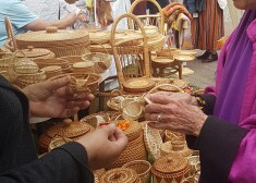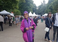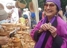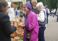Vija Vētra iepērkas latviešu amatnieku tirdziņā.
