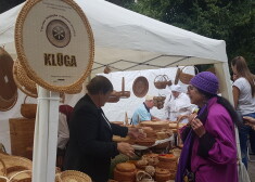 Vija Vētra iepērkas latviešu amatnieku tirdziņā