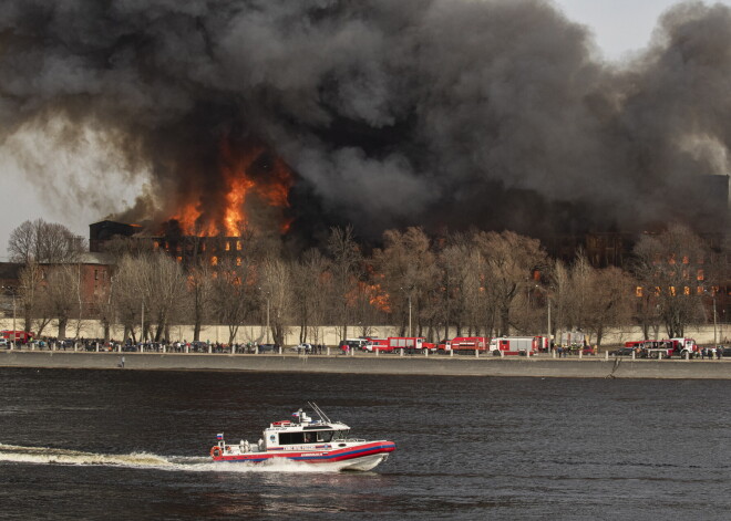 Vēsturiskas fabrikas ēkā Sanktpēterburgā izraisījies plašs ugunsgrēks