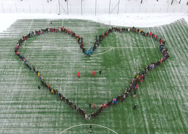 Valkā dzīvojošās ģimenes, uzņēmumu kolektīvi un citas organizācijas bija aicinātas 12. februārī doties uz Valkas - Valgas centru pie robežas, lai kopā izveidotu lielu sirds formu un iemūžinātu to ar dronu.