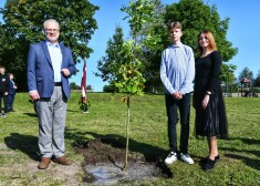 Valsts prezidents Egils Levits atklāj pirmo Laimes koku parku pasaulē.