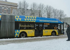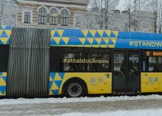 No 24. februāra Rīgā kursē īpaša dizaina trolejbuss, kuru rotā Ukrainas karoga krāsas un simboli.
