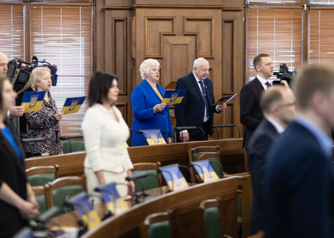 Saeima ārkārtas sēdē šodien pieminēja Krievijas pilna mēroga iebrukuma Ukrainā gadadienu.