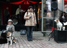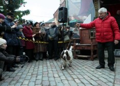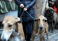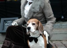 Angļu suņu parāde Šerloka Holmsa dzimšanas dienai veltītā pasākumā Doma laukumā.