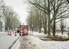 LVC norāda, ka darbdienās no plkst. 8.00 līdz 17.00 darbu vietā noteikts 2,5 metru platuma ierobežojums un satiksme tiek organizēta ar vadstatņiem un priekšrocības ceļa zīmēm.