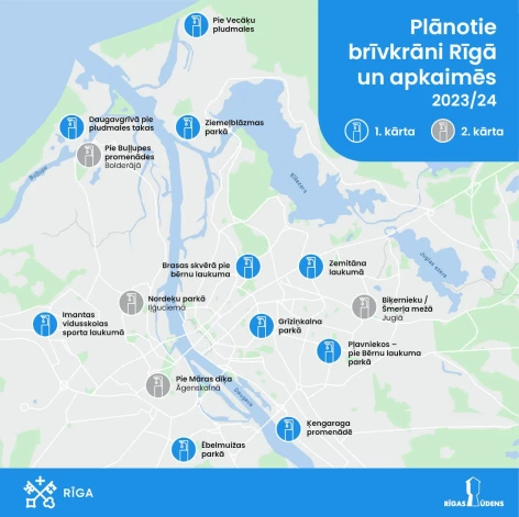 Pašvaldības uzņēmums “Rīgas ūdens” jaunos brīvkrānus uzstādīs Brasas skvērā, Grīziņkalna parkā, Ziemeļblāzmas parkā, Ēbelmuižas parkā, pie bērnu laukuma parkā Pļavniekos, Ķengaraga promenādē, Zemitāna laukumā, pie Vecāķu pludmales, pie pludmales takas Daugavgrīvā, kā arī Imantas vidusskolas sporta laukumā.