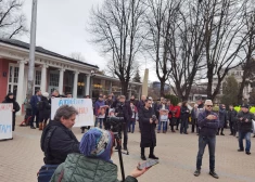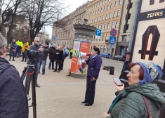 VIDEO: krievu aktīvisti Rīgas centrā pieprasa atbrīvot savus apcietinātos biedrus