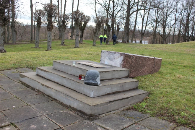 Vandaļi nogāž pieminekli Bauskas aizstāvjiem