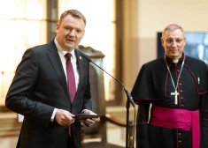 FOTO: Katoļu baznīca Saeimai atdod izglābtu vēsturisku mēbeli