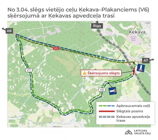 3. aprīlī uz visiem laikiem slēgs vietējā ceļa Ķekava-Plakanciems posmu, kas šķērso Ķekavas apvedceļu