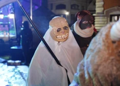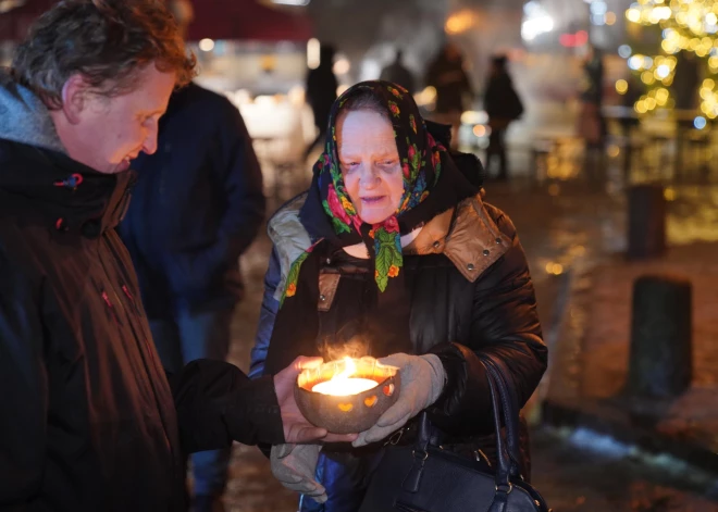 Maskarādē ar lāpām un dziesmām cauri Vecrīgai izvelk un sadedzina bluķi