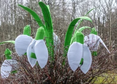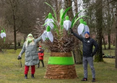 FOTO: Ventspilī ļaudis talkā priecīgi sastāda 5000 sniegpulkstenīšu stādu