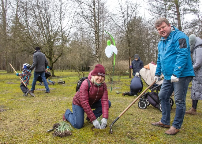 Iedzīvotāju iemīļotā Sniegpulkstenīšu stādīšanas talkā arī šogad pulcējās kupls skaits dalībnieku.