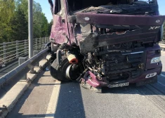 Uz Gaujas tilta aiz Ādažiem notikusi divu kravas automašīnu un traktora sadursme