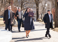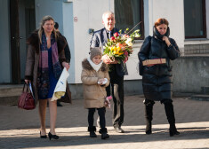 Ļaudis ierodas uz Teātra dienas izcilības balvas pasniegšanu