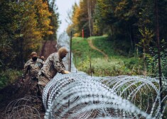 Lai kavētu nelegālo migratnu plūsmu, uz Latvijas-Baltkrievijas robežas tiek uzstādīts Slovēnijas Aizsardzības ministrijas dāvinātais pagaidu žogs.