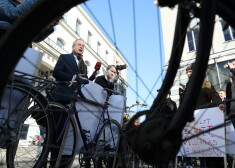 Piketā pie Rīgas domes pieprasa veloinfrastruktūras uzlabošanu