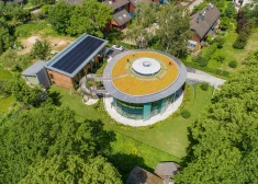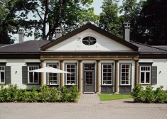 Ēka vienstāvīgs apļa un sektora apjoms ar slīpu jumtu un dekoratīvu koka apdari. Telpu plānojums - apļa korpuss paredzēts dienas ...
