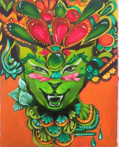 Krāsu eksplozija, kaktusu un zemeņu vainagu ieskautas skaistu meiteņu sejas, laipnu kaķu vai gliemežu skūpsts un paradīzes putni – mākslinieces Auces Bieles darbi ieved saviļņojošā, vizuāli svešā, bet iztēli rosinošā pasaulē.