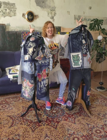 Tuvumā maizi var nopirkt. Sieru arī. Bet neesmu jau tik gaisīga, lai tikai gleznotu. Darbojoties ar džinsu balinājumiem, sapratu, ka ar balinātāju sanāk ne tikai klekši, bet tas, ko vēlos. Domāju, ka esmu radījusi unikālu tehniku, varu veidot mākslas priekšmetus, apģērbu, ko var valkāt un mazgāt, mans zīmols ir Auce Biele Jeans. Dzīvojot Marokā, attālināti pabeidzu LIAA atbalstītu biznesa kursu.
