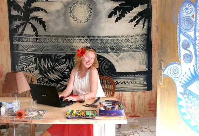Dzīvojām ciematiņā pašā okeāna krastā ar īstajiem viļņiem, kas bija īsts magnēts sērferiem. Marokā ir ļoti silts, caurmērā plus 28 grādi, uz turieni pārceļas Eiropas pensionāri. Klimats ir ļoti labs, jo visu gadu vienāda temperatūra. Mans vīrietis rīkoja sērfošanas, es – gleznošanas nometnes. Reklamējos caur sērferu interneta lapām, piedāvājot kā pievienoto vērtību šo iespēju gleznot.