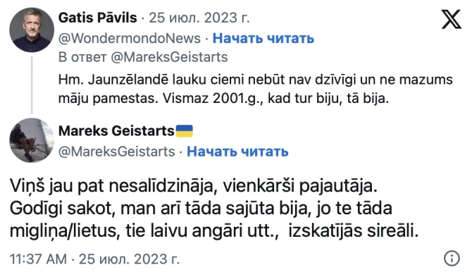 Uz Mareka ziņojumu vīrietis atbildējis: "Hmm. Jaunzēlandē lauku ciemati nebūt ne vienmēr ir rosīgi, daudzas mājas pamestas novārtā. Vismaz tā bija 2001. gadā, kad tur biju." Šo ziņu "uzķēruši" arī citi lietotāji, kuri arī piekrīt, ka Jaunzēlandē kaut kur laukos nav sakaru, arī ir tukšs, nav cilvēku.