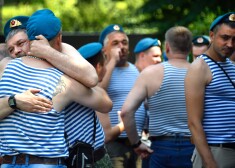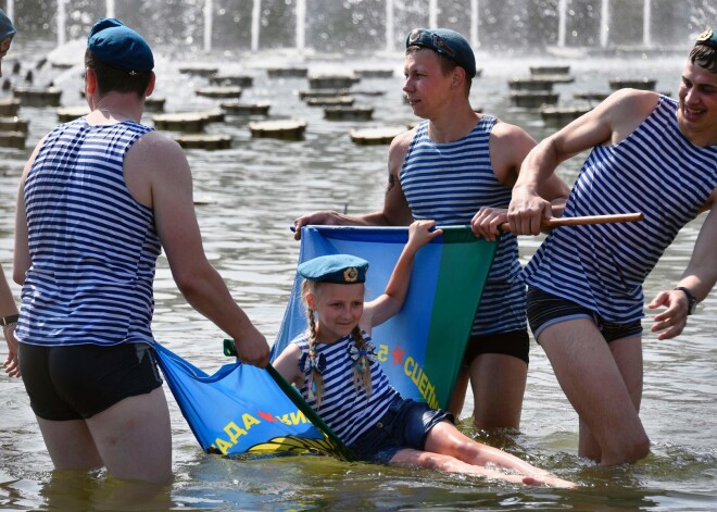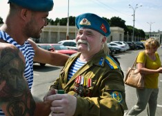 Šodien Vērmanes dārzā Rīgā sanākuši bijušās padomju armijas vīri, lai atzīmētu Krievijā svinamo Gaisa desanta karaspēka dienu.