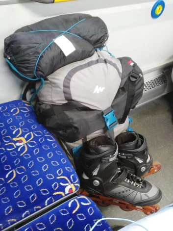 Skrituļslidas tomēr nav tik smagas, tās tiek pieliktas pie somas sāniem un tad netraucē. Ir vērts tās ņemt līdzi, jo ietaupa gan naudu, gan laiku.