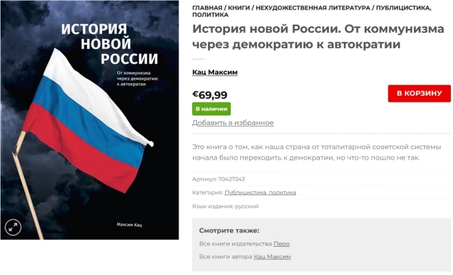 Taču jāpiebilst, ka SIA "Kniga lv" ir nopērkamas arī pavisam "pretējās nometnes" darbi, piemēram, Krievijas aktīvista, politiķa Maksima Kaca grāmata "Jaunās Krievijas vēsture. No komunisma caur demokrātiju uz autokrātiju".