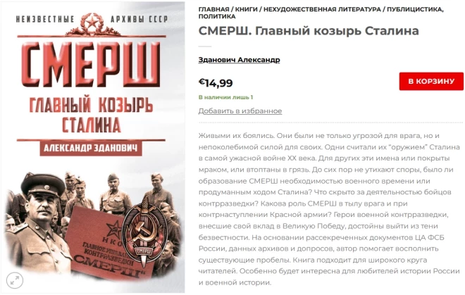 Spriežot pēc mājaslapas, pašlaik ir pieejams tikai viens viņa grāmatas "SMERŠ. Staļina galvenais trumpis" eksemplārs.