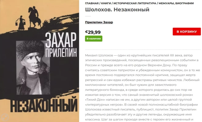 SIA "Kniga lv" piedāvā viņa grāmatu "Šolohovs. Nelikumīgais". Grāmata vēsta par 20. gadsmita krievu autoru Mihailu Šolohovu.