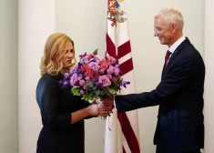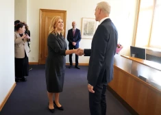 FOTO: Kariņš simboliskā ceremonijā nodod premjera amata pilnvaras Siliņai