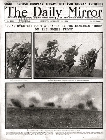 Pirmā pasaules kara propagandā tika izmantota tā laika modernā māksla – kinematogrāfs. Lielbritānijas propagandas dienests radīja iespaidīgu dokumentālo filmu Kauja pie Sommas (The Batlle of the Somme). Šajā kaujā visi cieta ļoti smagus zaudējumus – gāja bojā vairāk nekā 450 000 vāciešu, 400 000 britu un 200 000 franču karavīru, tika izmantoti tanki un indīgās gāzes. Filma iznāca uz ekrāniem 1916. gada augustā, kad kauja vēl nebija galā. Britu laikraksts The Times vēstīja, ka filmas skatītāji bijuši satraukti un ļoti pārdzīvojuši redzēto. Sievietes ik pa brīdim aizklājušas seju ar plaukstām, lai neredzētu šausmas uz ekrāna.